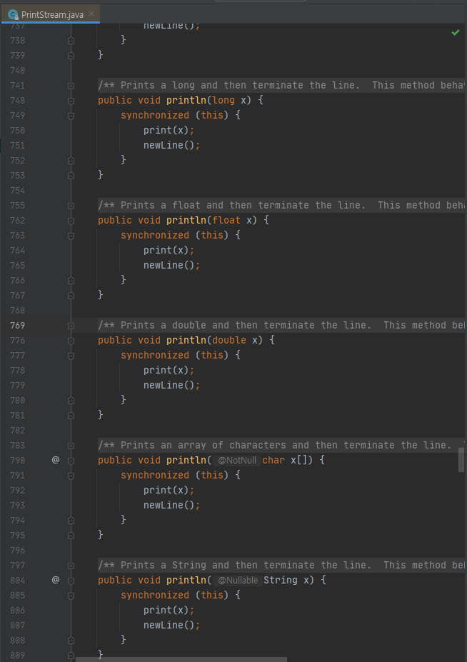 아래 소스는 본래 PrintStream 소스 코드이다.